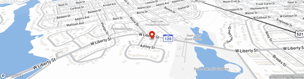We are across from Pizza Hut and next to Swan Lake, directly beside Sumter Family Dental Center.